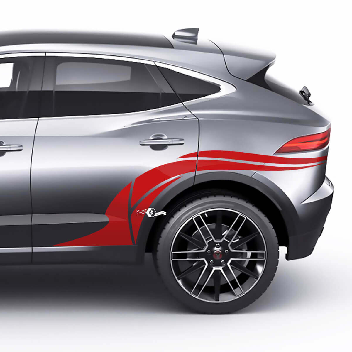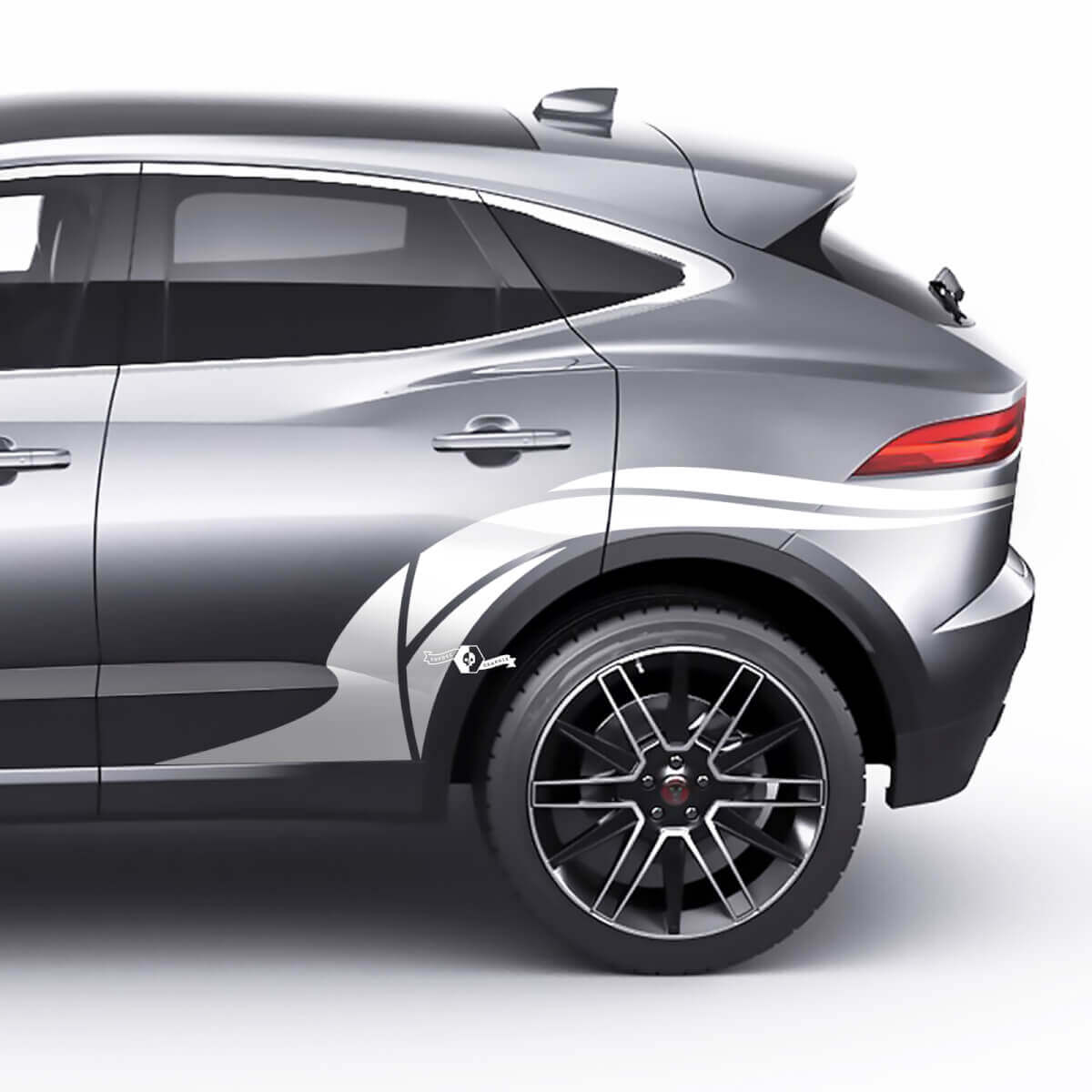 Aggiorna la tua Jaguar E-Pace con il nostro adesivo grafico per l'arco della ruota posteriore, progettato per adattarsi perfettamente e valorizzare l'aspetto dell'area della ruota posteriore del tuo veicolo.