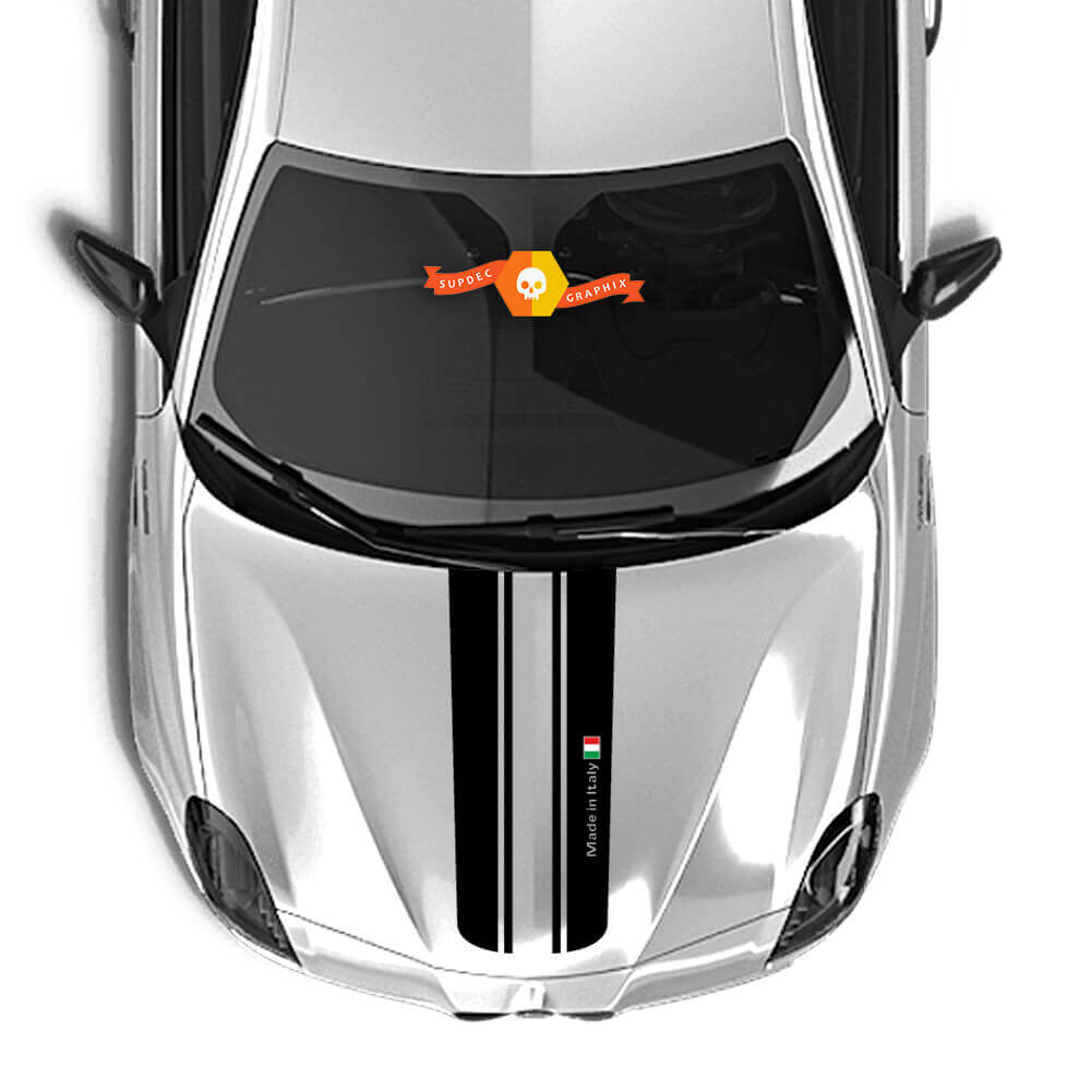 Il design dell’adesivo "Made in Italy" è completato da una piccola bandiera italiana, creando un aspetto elegante e raffinato. Questi adesivi per il cofano sono progettati per mettere in risalto le origini del tuo veicolo e aggiungere un tocco di italianità.