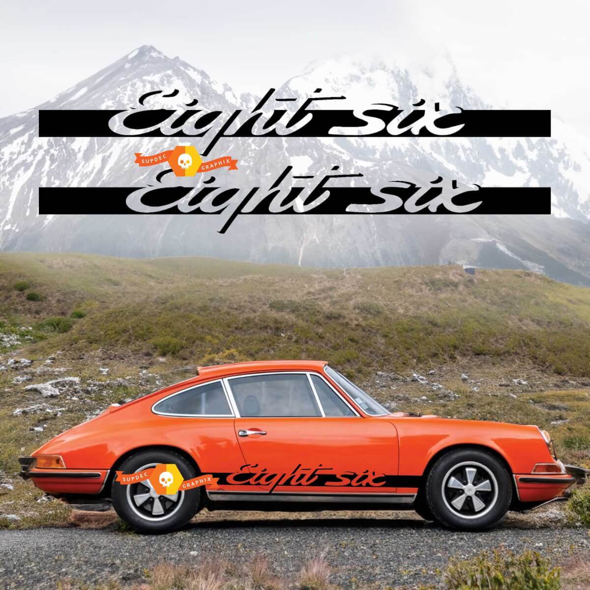 Aggiungi un tocco distintivo e sportivo alla tua Porsche 911 con il Carrera Eight Six Stripes Side Decal Sticker. Progettato per gli appassionati di auto, questo adesivo in vinile migliora il profilo laterale del veicolo con le classiche strisce da corsa che simboleggiano prestazioni e stile.