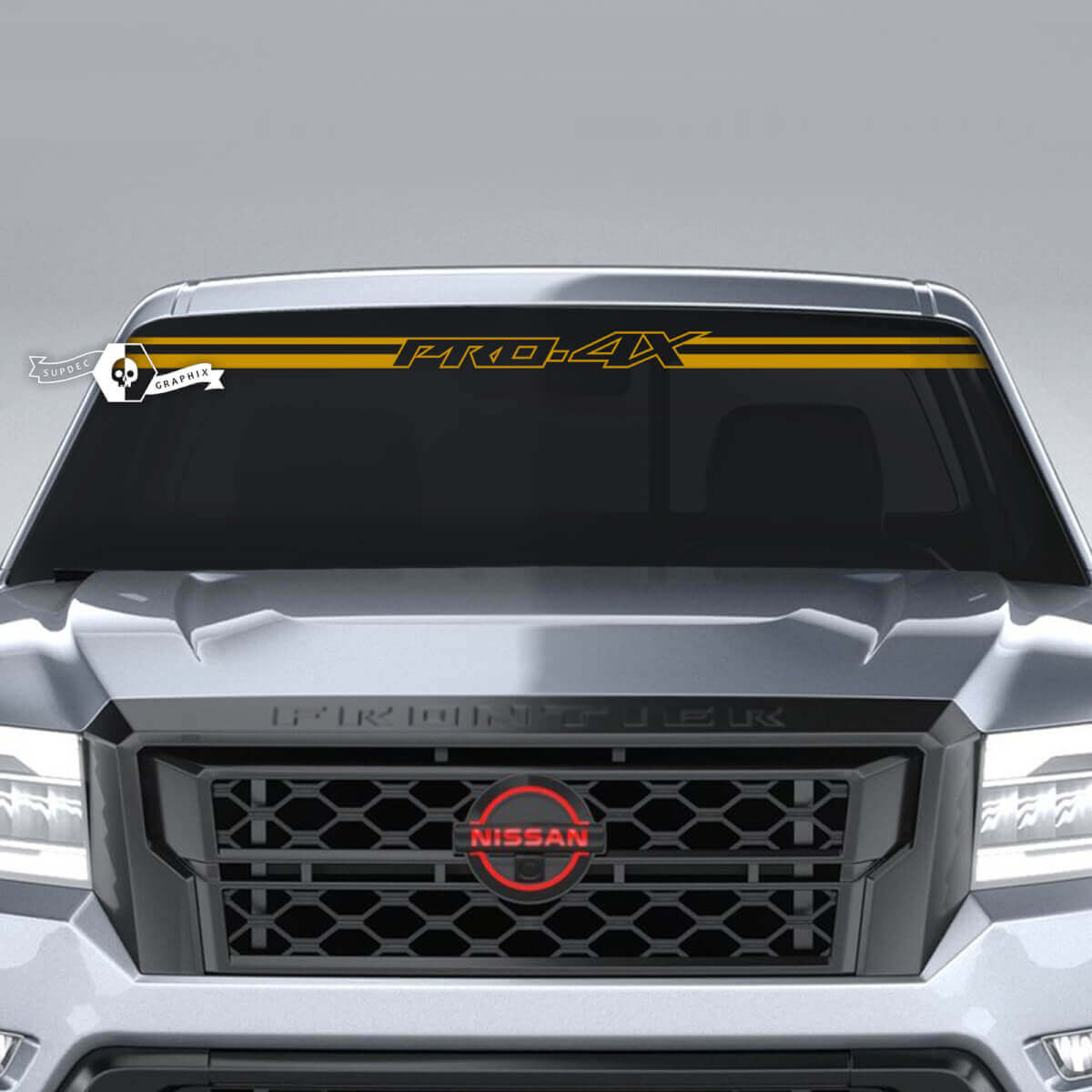 Personalizza la tua Nissan Frontier PRO-4X con i nostri adesivi in vinile premium per la linea del parabrezza. Progettati specificamente per il modello PRO-4X, questi decalcomanie aggiungono un aspetto elegante e personalizzato al parabrezza del veicolo.