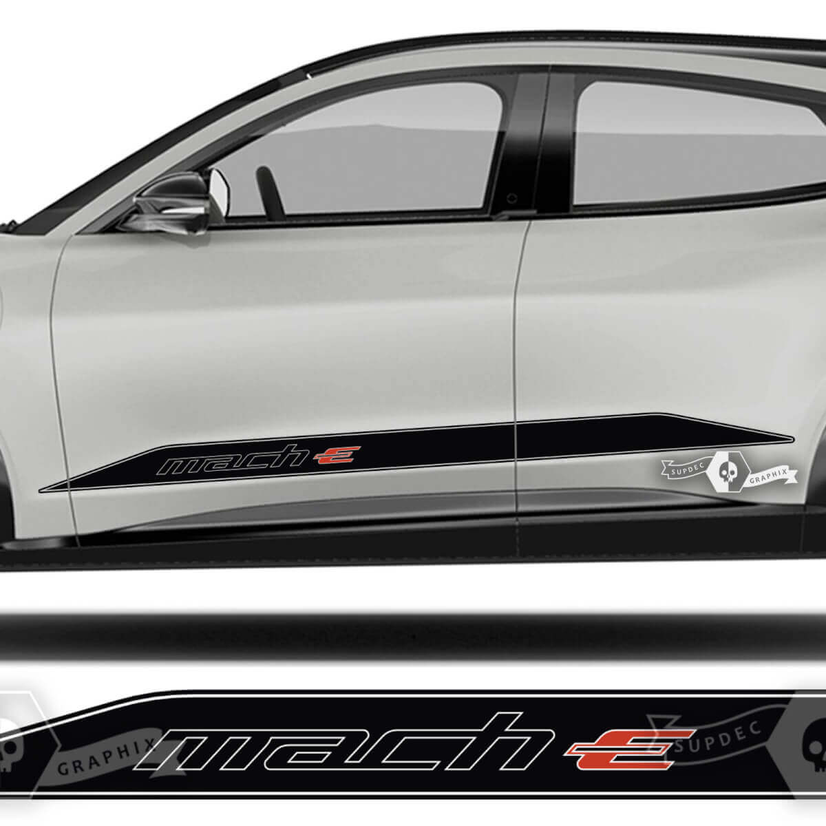 Aggiorna la tua Musclecar Musclecarmodel MACH-E con le nostre strisce adesive in vinile per le minigonne di alta qualità. Progettate per adattarsi perfettamente ai contorni del veicolo, queste decalcomanie aggiungono un aspetto elegante e sportivo che risalta sulla strada.
