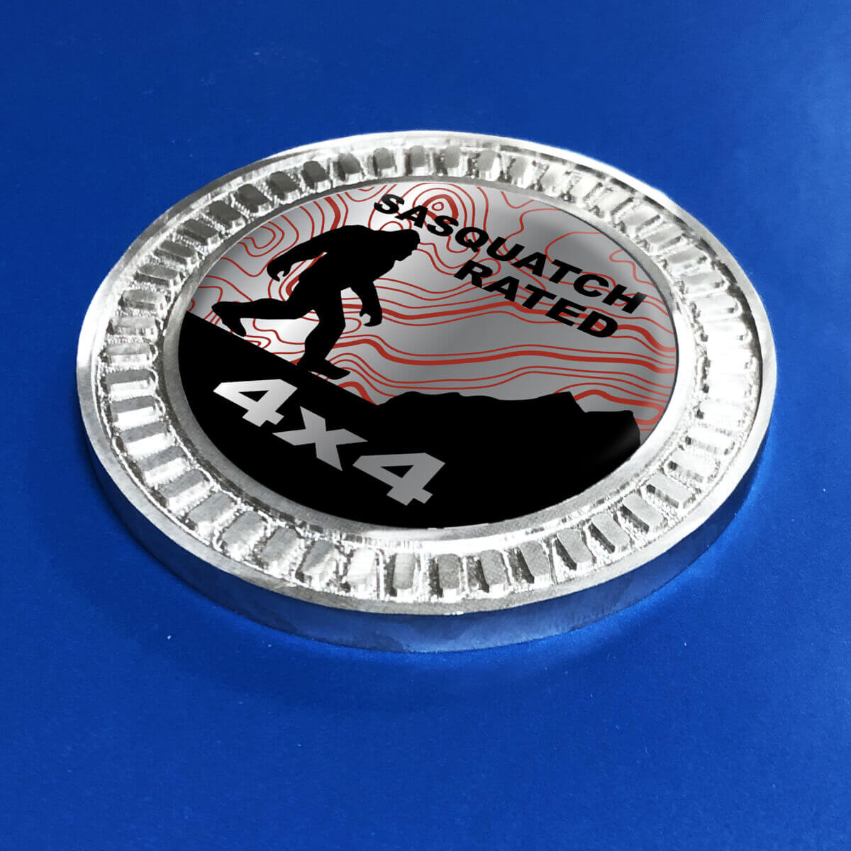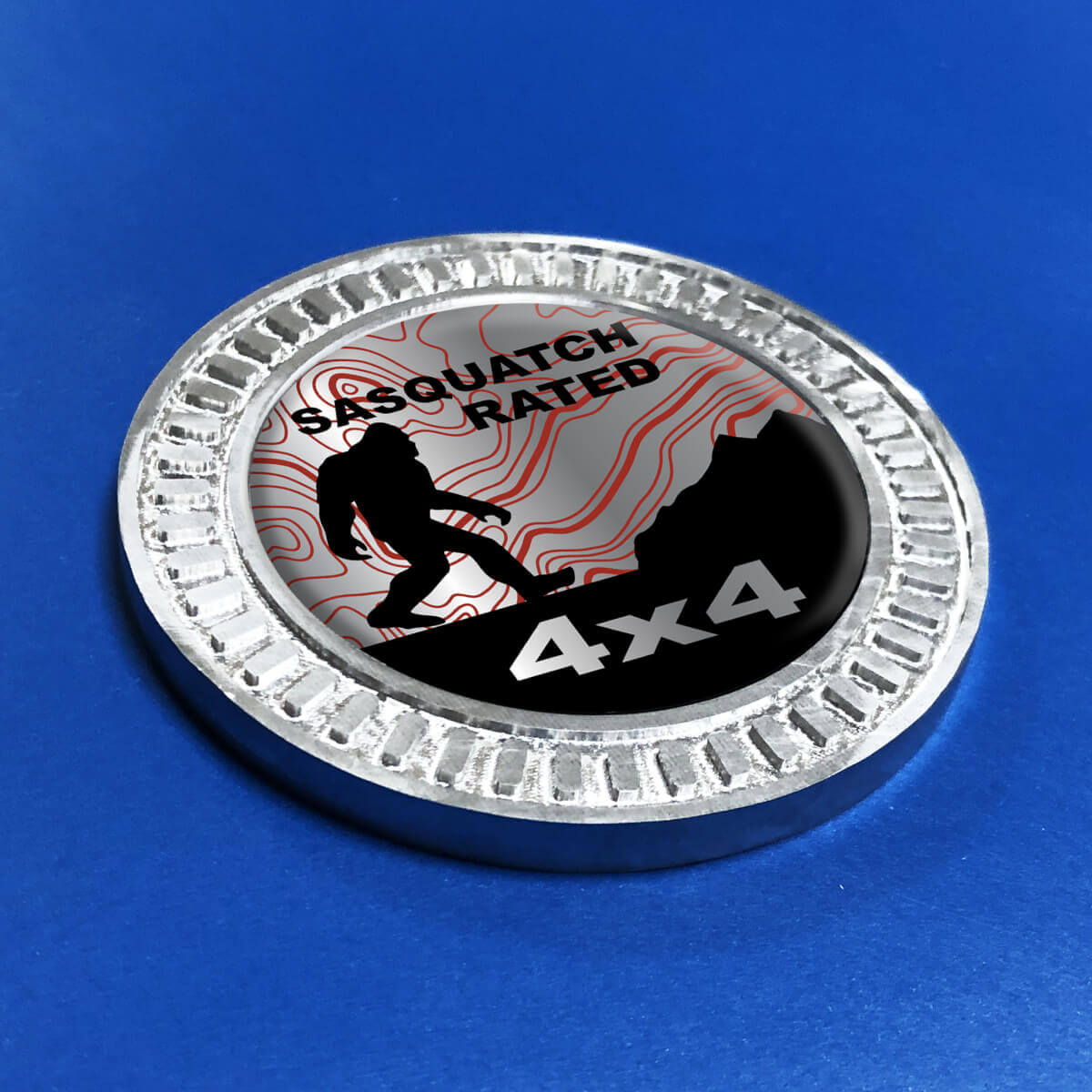 Badge 3D Sasquatch Montagne classificate Linee topografiche Emblema in metallo e alluminio