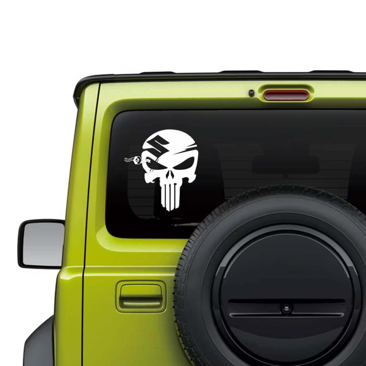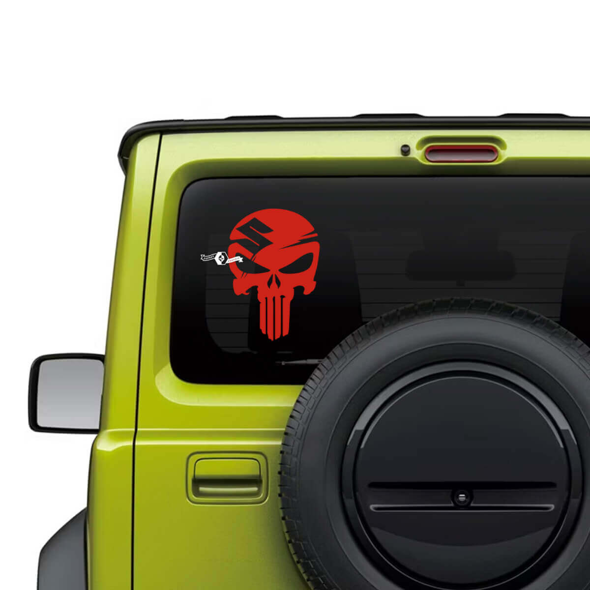 Aggiorna la tua Suzuki JIMNY con il nostro esclusivo adesivo in vinile con logo Punisher per il finestrino posteriore. Realizzato con materiali di qualità premium, questo adesivo resistente è progettato per resistere alle condizioni esterne aggiungendo un look audace e accattivante al tuo veicolo.