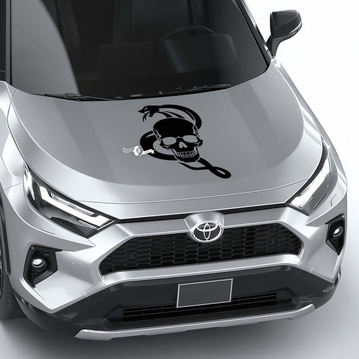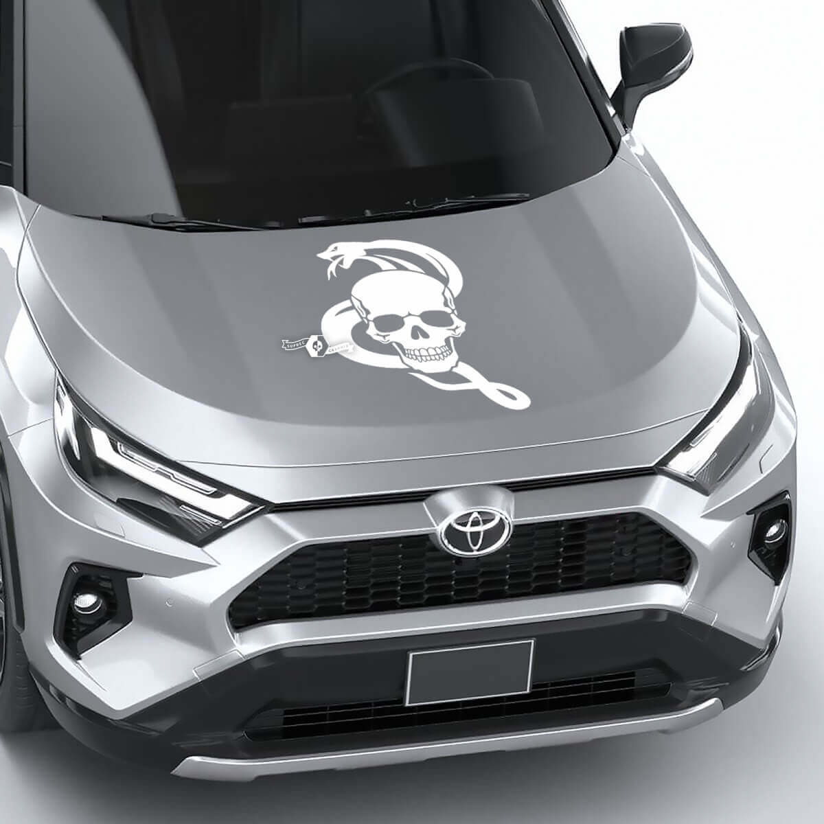 Trasforma il tuo veicolo con l’imponente Adesivo in Vinile Universale per Cofano con Serpente e Teschio. Questo design accattivante presenta un serpente dettagliato intrecciato con un teschio, perfetto per gli appassionati di auto che vogliono aggiungere un tocco aggressivo e personalizzato.