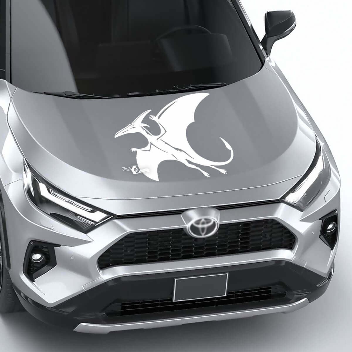 Trasforma il tuo veicolo con l'adesivo universale in vinile per cofano Pterodactylus antiquus, un adesivo grafico unico e accattivante, perfetto per ogni appassionato di automobili. Questo adesivo in vinile di alta qualità è progettato per adattarsi universalmente alla maggior parte dei cofani delle vetture, aggiungendo un tocco preistorico e avventuroso al tuo veicolo.
