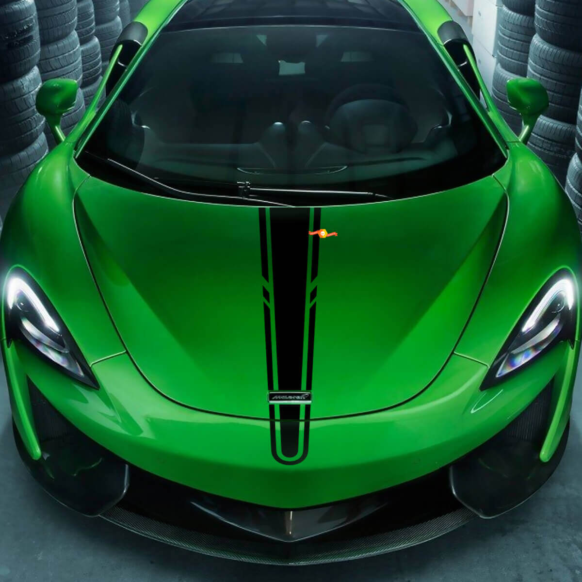 "Decalcomanie a strisce sul cofano della McLaren 570"