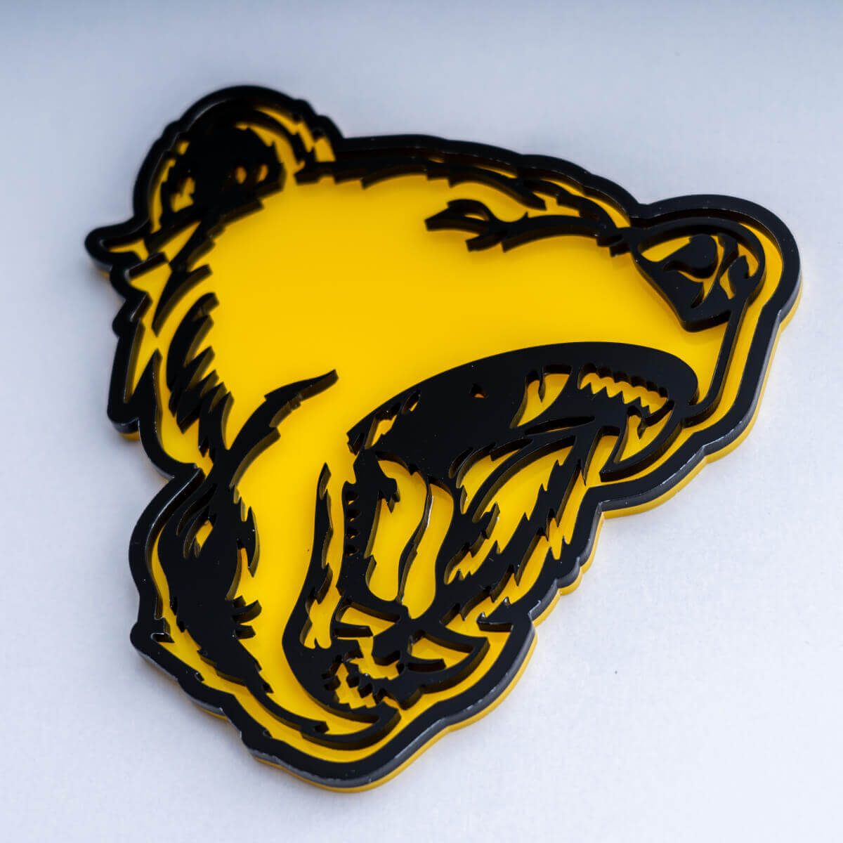 - Design 3D dinamico dell’orso grizzly per un aspetto audace e distintivo