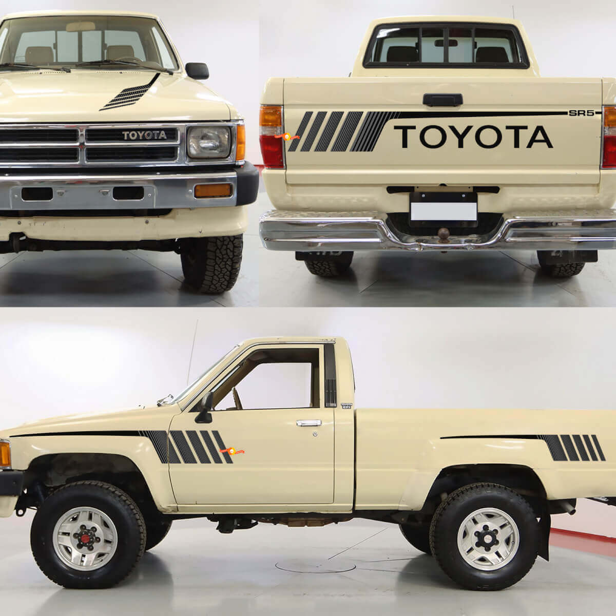 Aggiorna il tuo Toyota Pickup SR5 con i nostri adesivi in vinile premium per portellone e cofano. Progettati per una vestibilità perfetta, questi adesivi aggiungono un tocco elegante e personalizzato al tuo camion.