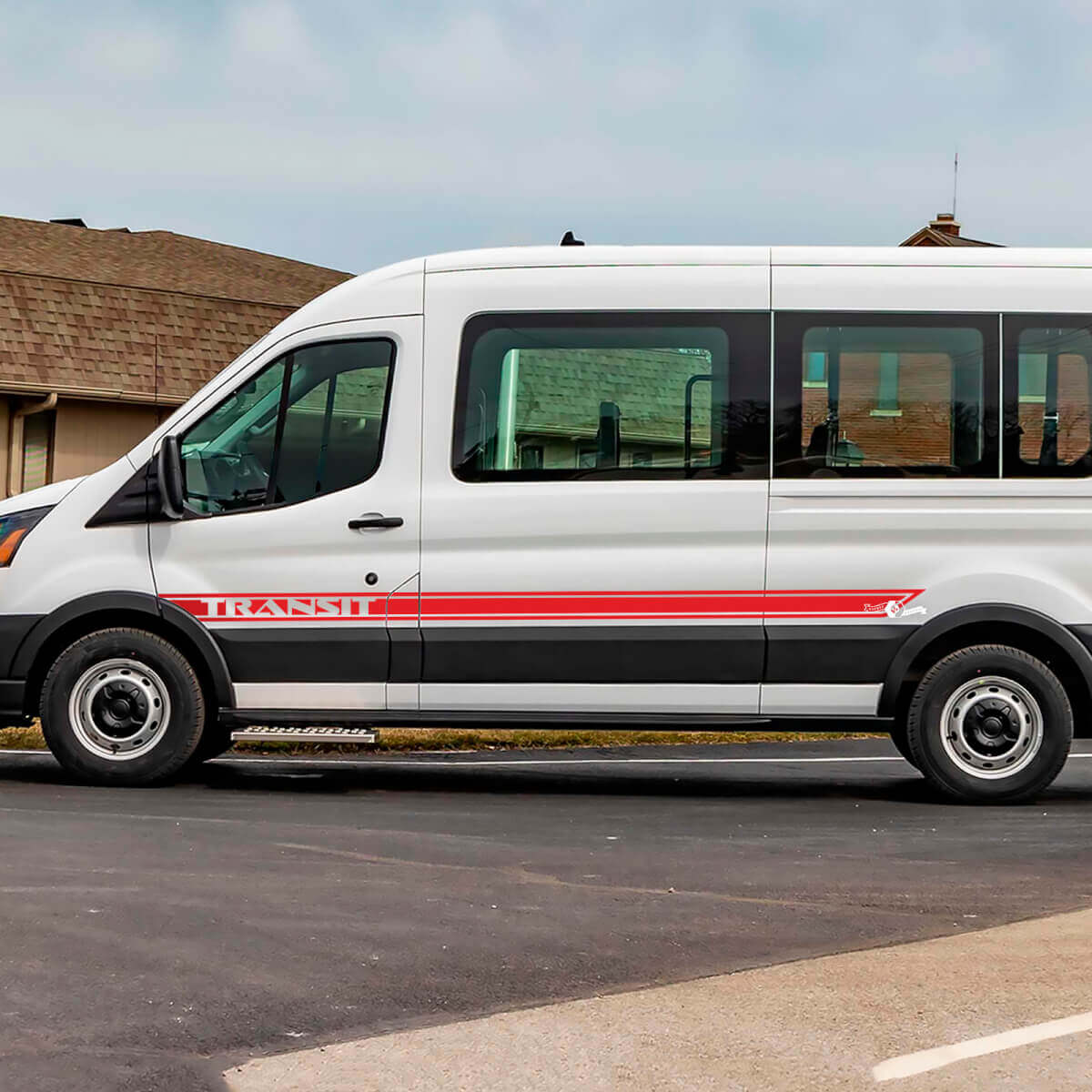 Migliora l’aspetto del tuo Ford Transit con i nostri adesivi premium in vinile per strisce laterali. Progettati per un adattamento perfetto, questi adesivi donano al tuo veicolo un look elegante e personalizzato.