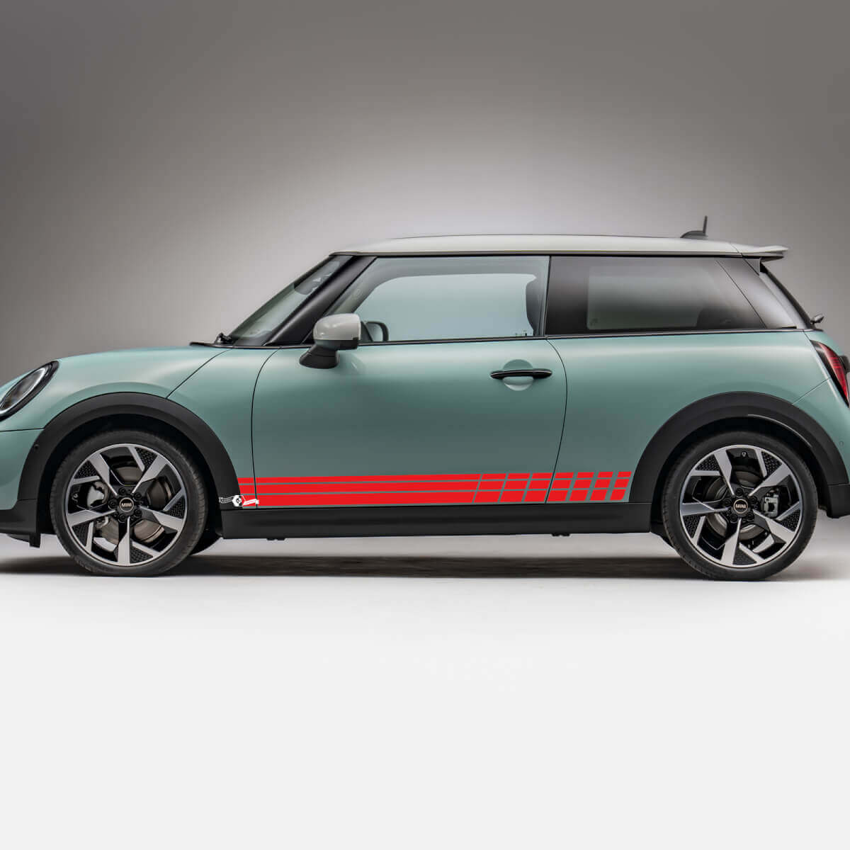 Migliora la tua Mini Cooper S con la nostra decalcomania grafica Side Racing Stripes. Progettata per dare alla tua auto un aspetto sportivo e dinamico, queste strisce in vinile sono facili da applicare e durevoli.