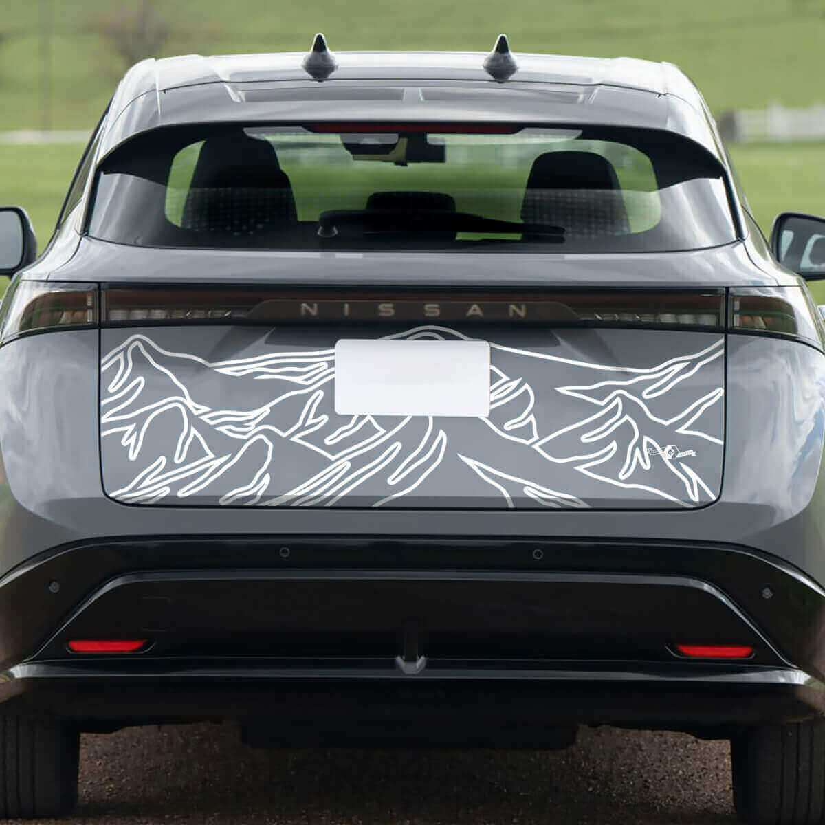 Migliora la tua Nissan ARIYA 2 con il nostro Adesivo Grafico Racing Montagne Posteriori, progettato per aggiungere un’atmosfera audace e avventurosa al tuo veicolo.