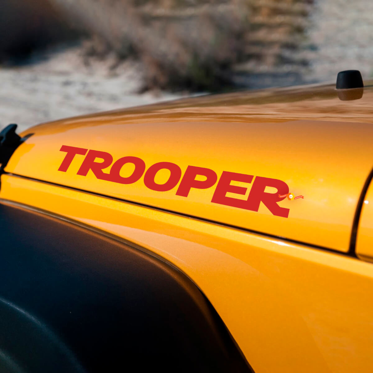 Realizzato in materiale vinilico di alta qualità, questo adesivo è progettato per resistere agli agenti atmosferici. Pioggia o sole, l'adesivo per cofano Trooper manterrà i suoi colori vibranti e dettagli nitidi, garantendo una durata e uno stile duraturi per la tua Jeep Wrangler.