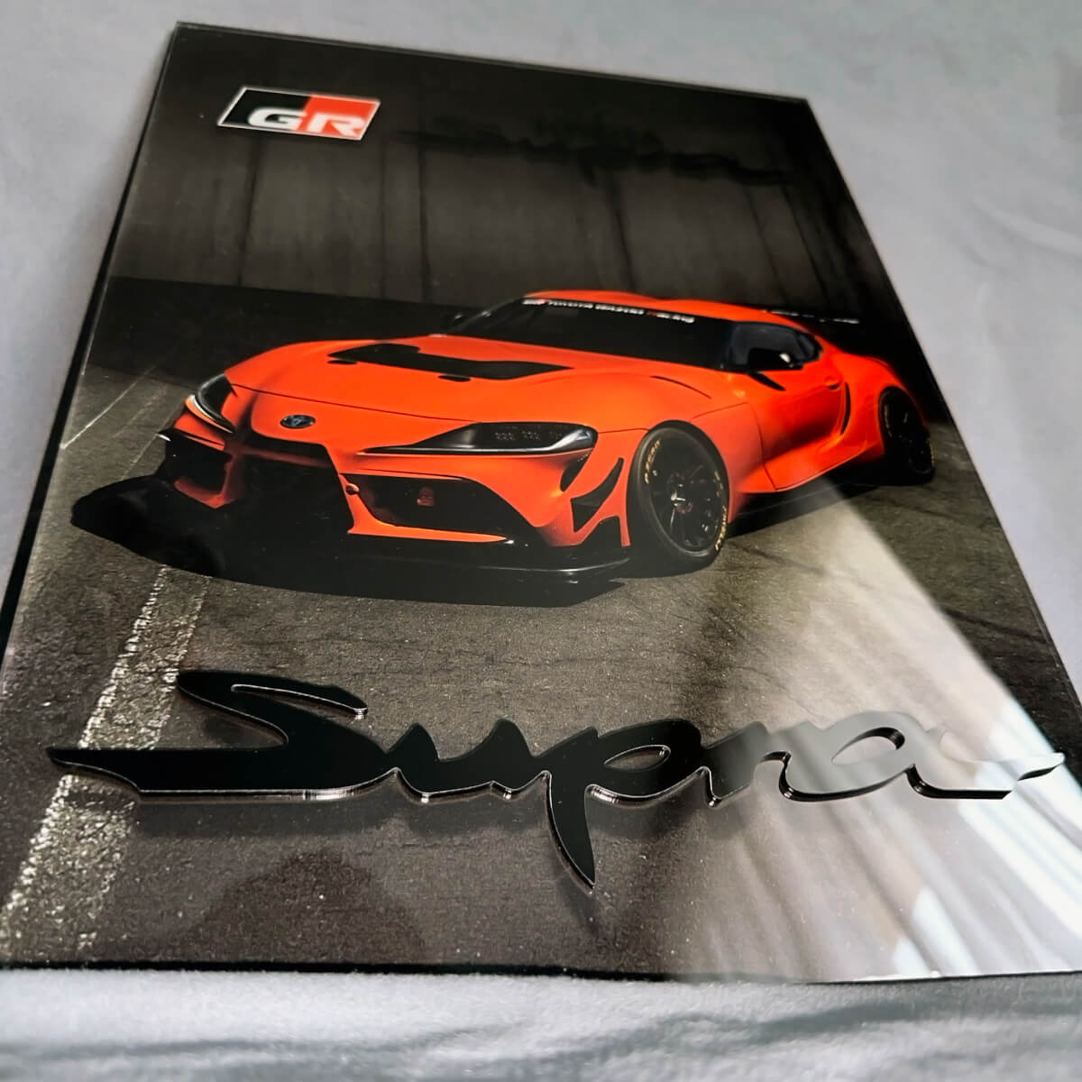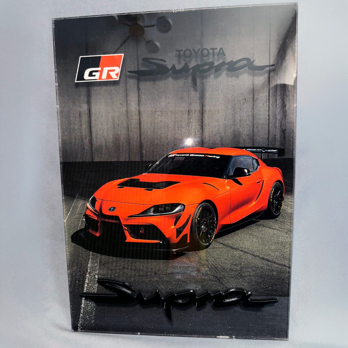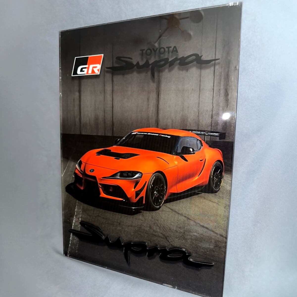 Pannello artistico da parete per garage in acrilico lucido personalizzato Toyota Supra