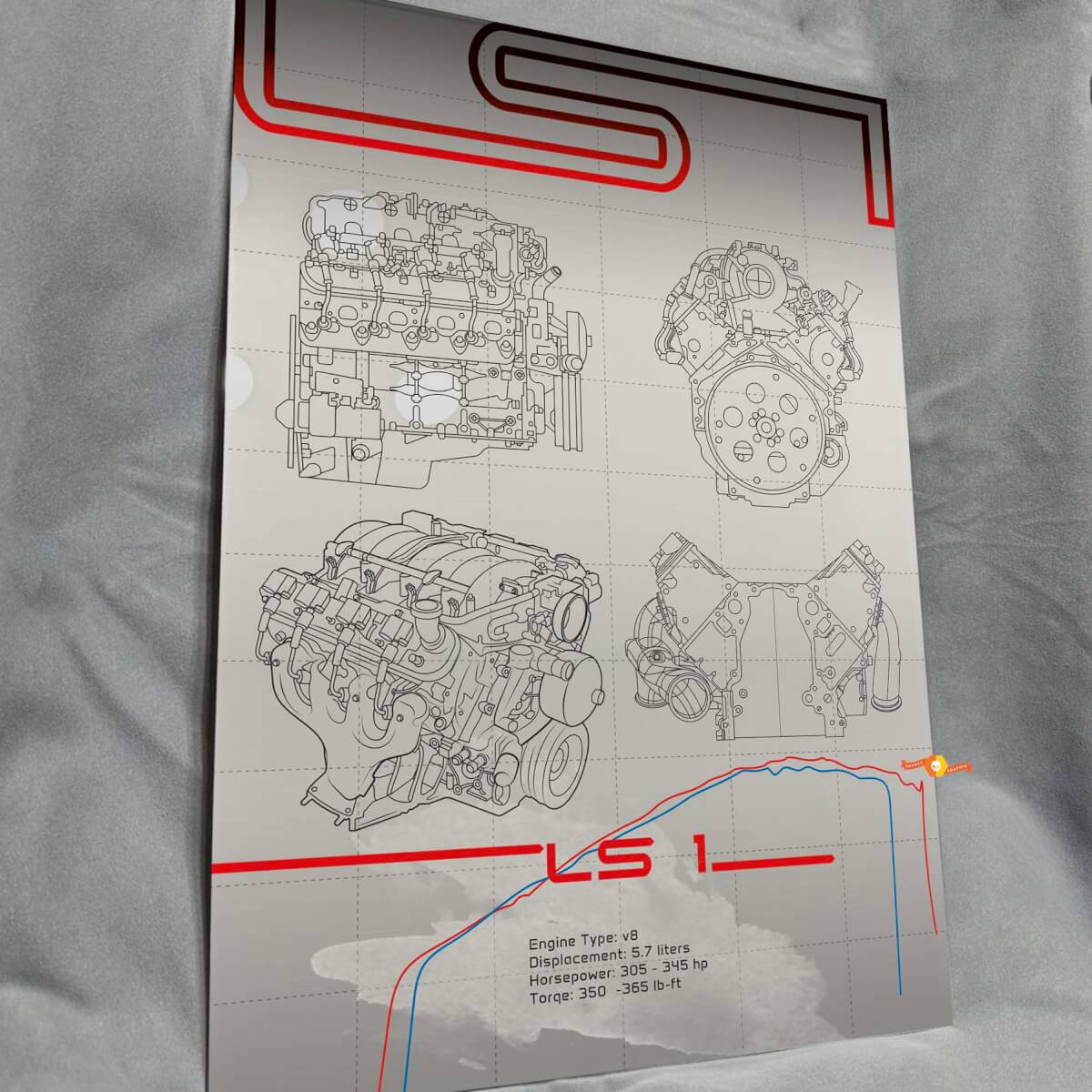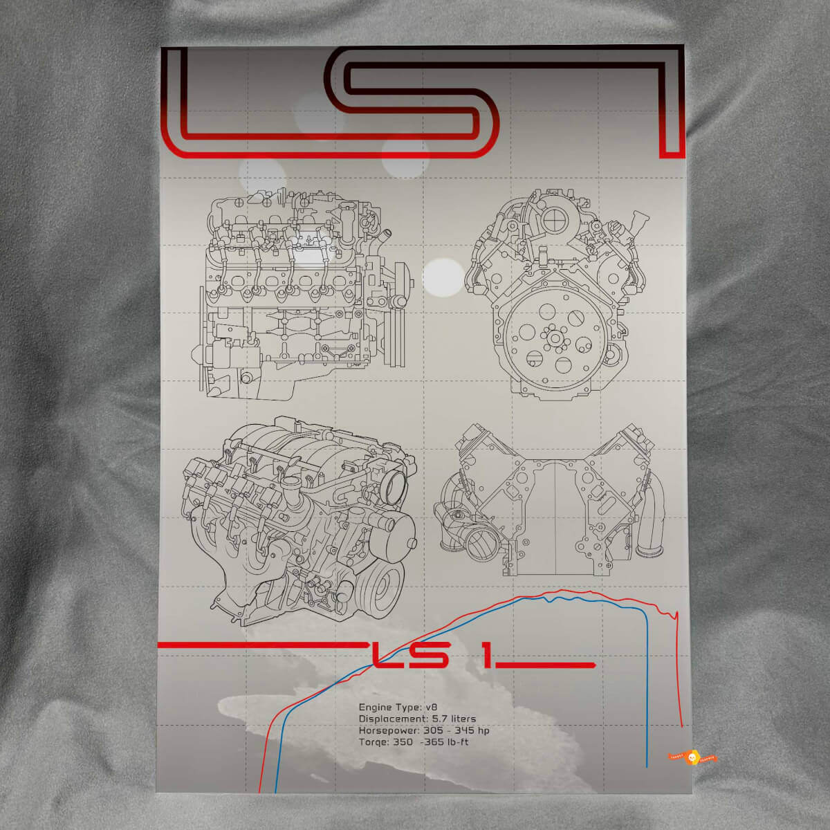 Dai vita alle pareti del tuo garage con questo omaggio unico e accattivante al leggendario motore LS1.