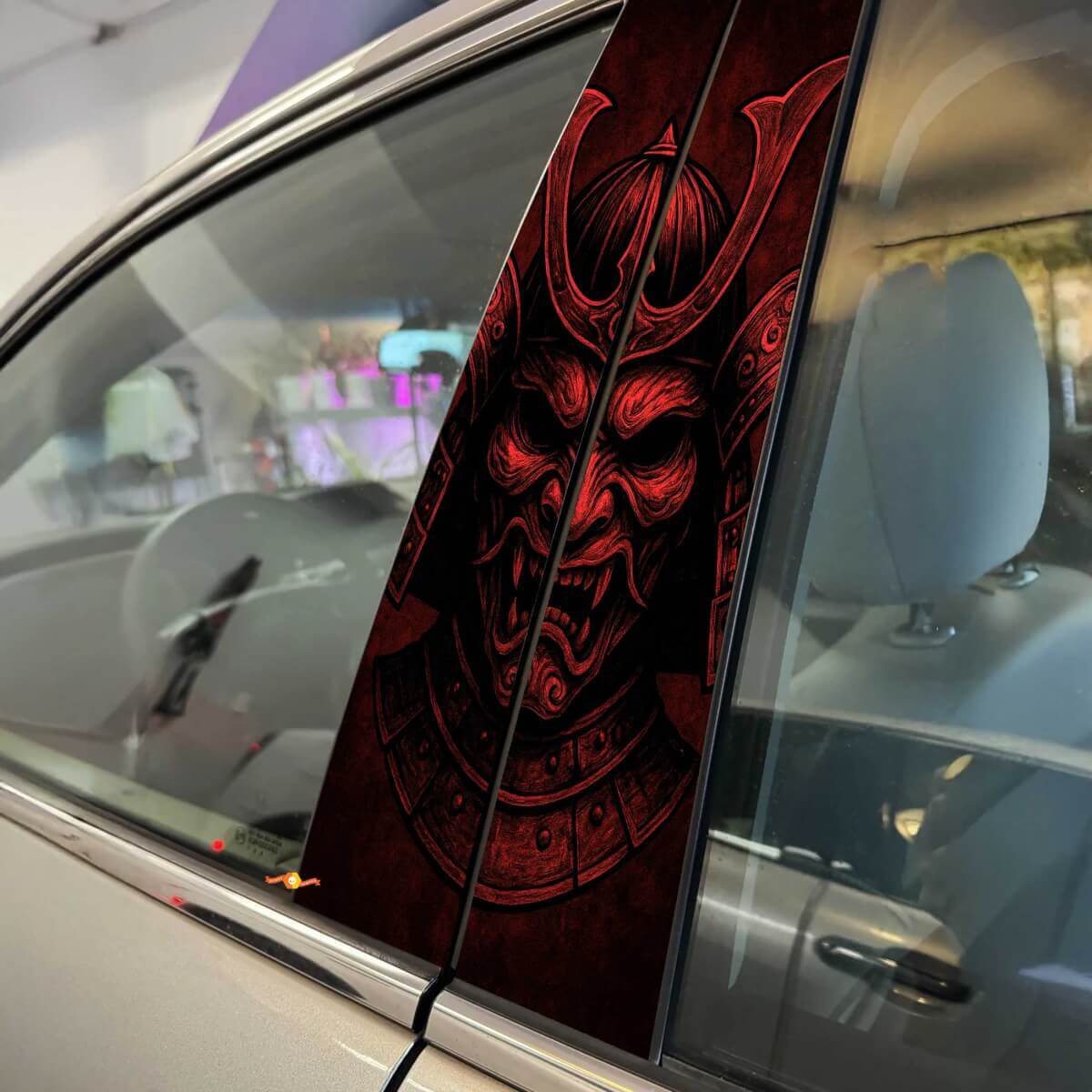 Eleva lo stile del tuo veicolo con il nostro Adesivo in vinile Maschera Samurai per Porte Montante dall’Aspetto Aggressivo. Questo design sorprendente presenta una maschera da samurai feroce che aggiunge un aspetto grintoso e audace alle porte montanti della tua auto, facendola risaltare sulla strada.
