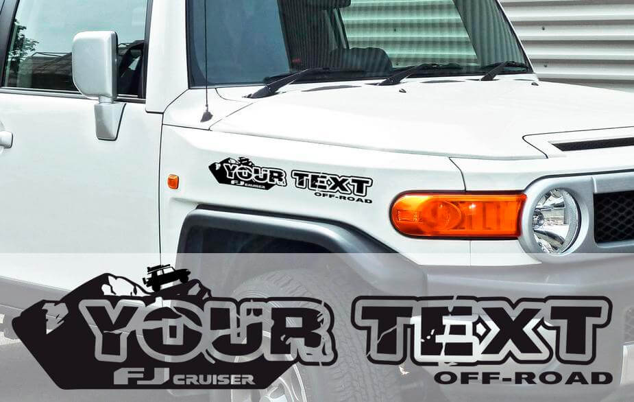 COPPIA adesivi in vinile per cofano Toyota FJ Cruiser decalcomanie il tuo testo