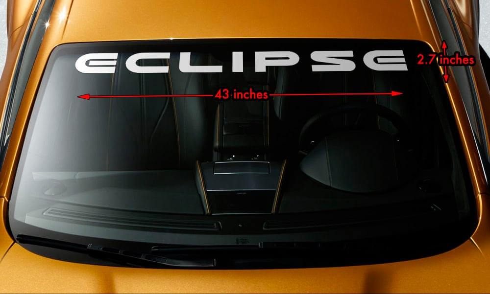 Migliora lo stile della tua Mitsubishi Eclipse con il nostro adesivo in vinile Premium per parabrezza, misura 43" x 2,7". Questo adesivo di alta qualità è progettato per offrire un aspetto elegante e personalizzato che si distingue sulla strada.