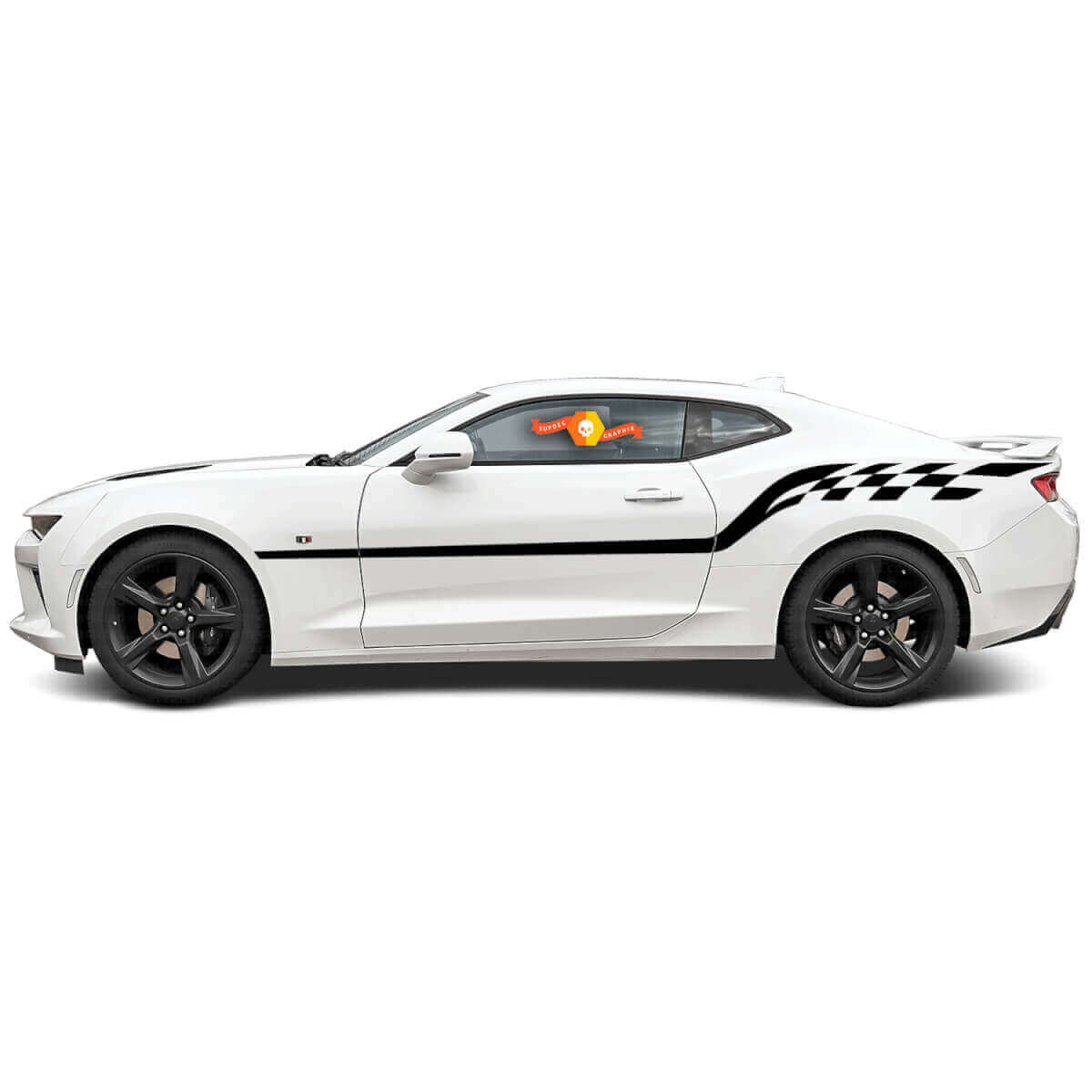Migliora la tua Chevrolet Camaro 2010-2020 con il nostro adesivo in vinile con strisce laterali a scacchi. Progettato per gli appassionati di auto che desiderano un aspetto audace ispirato alle corse, questi adesivi sono realizzati in vinile di alta qualità per una lunga durata e facile applicazione.